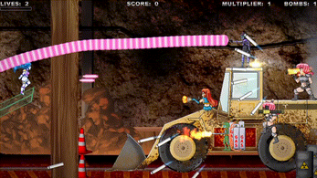 barrage of bullets! If you get surrounded, use smart bombs to wipe them out!